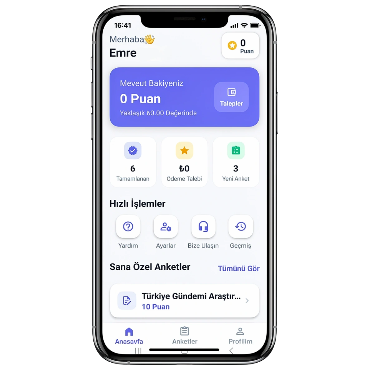 Tamamladığın her anket sonrası bakiye artar.